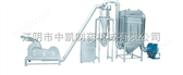 工艺流程物料由中碎机组放入料斗,经过高速转动的叶片与齿板之间的剪切,撞击粉碎后,有风机负压抽入旋风分滤器,由自动下料机排出,进入微粉碎机组,经过细粉碎后,进入旋风分滤器,成品料由自动下料器排出,直接装